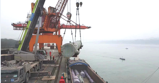 近日,瀘州港主動(dòng)為本地企業(yè)服務(wù),承接其發(fā)往伊朗的整套生產(chǎn)線設(shè)備吊裝作業(yè)任務(wù)。設(shè)備總計(jì)約4500立方米,其中有單件設(shè)備長(zhǎng)30.5米、寬2.5米、高3米、重143噸,該設(shè)備已超出港口單件最大120噸的吊裝能力,對(duì)港口吊裝能力提出新的挑戰(zhàn)。